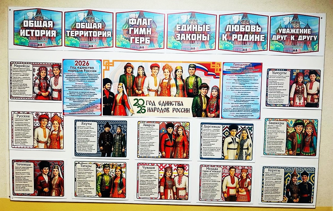 И оформление стенда «Единство народов — это сила России» стало важным этапом для нашей гимназии. Это наглядное пособие позволило всем гимназистам больше узнать о культуре, истории и обычаях представителей разных народов, проживающих в России и наконец, могли осознавать ценность взаимопонимания и сотрудничества.