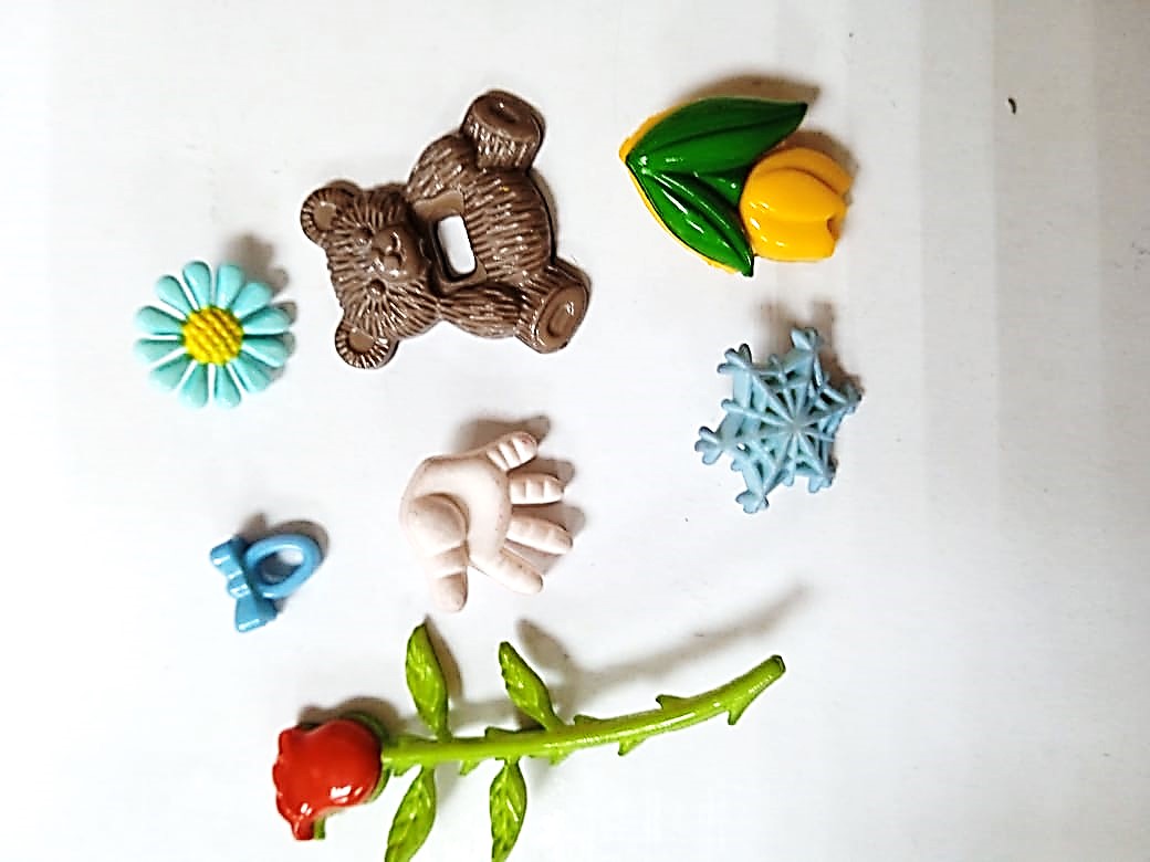 Вот некоторые из них: учащаяся Мирошниченко Дарья, принесла пуговицу со звездой 1988 года, которую она случайно нашла у себя в огороде, а у Варвары Колесниковой каждая пуговица отражала детскую тематику. Здесь были пуговицы в форме ромашки, ландыша, розы, бантика, снежинки, мишка и т.д.