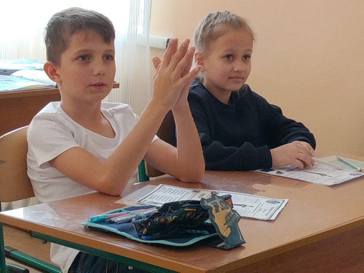Ученикам начальных классов предложили сформулировать понятие «волонтер» и определить его главные качества с помощью «цветка доброты», на лепестки которого наклеивались слова. Им также рассказали, какие российские знаменитости занимаются благотворительностью и с какого возраста можно стать волонтером.
