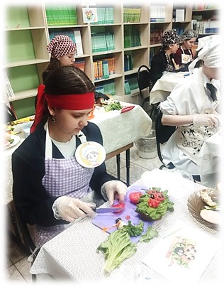 Конкурс состоял из трех этапов: «Представление или визитная карточка», «Теория» и практическая часть «Кулинарный поединок», где ребятам предстояло приготовить три вида бутербродов: «Канапе», «Горячий бутерброд», «Веселый бутерброд».