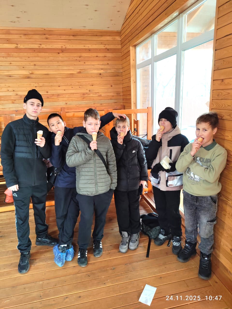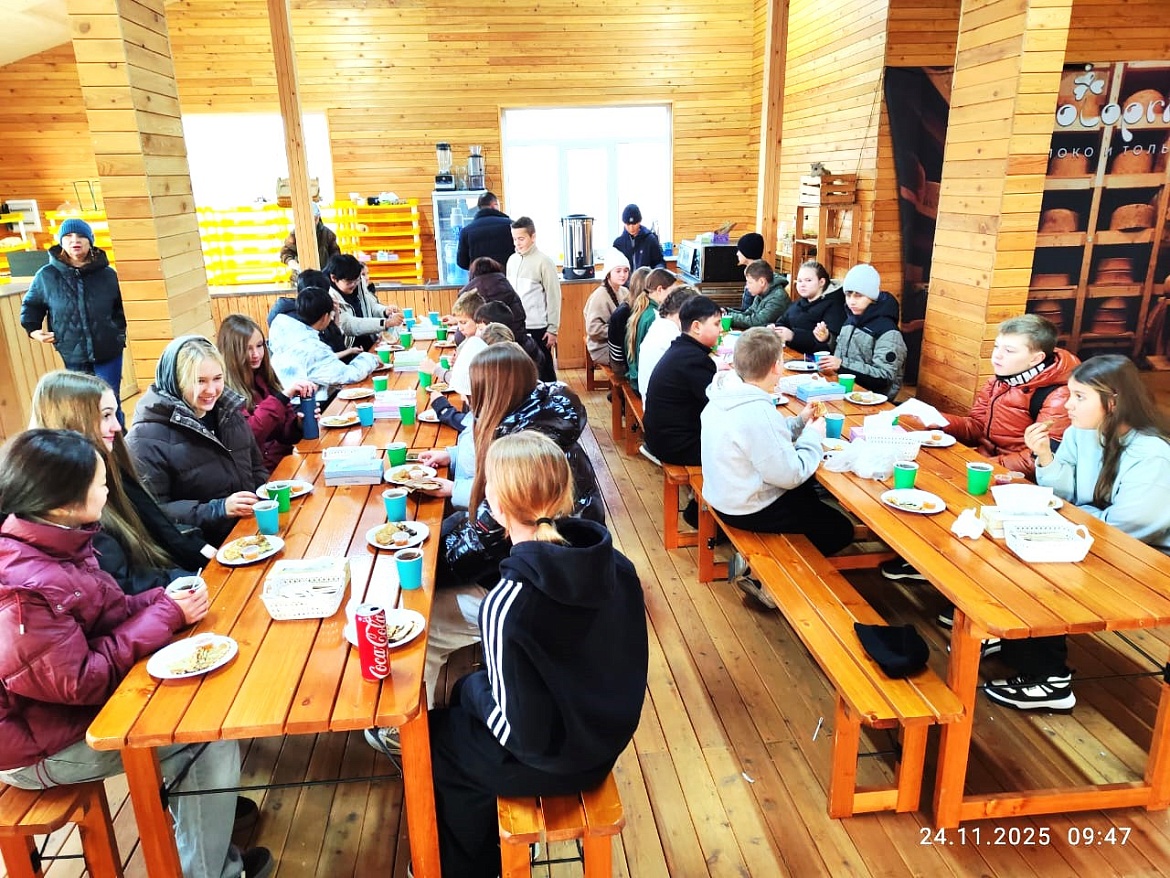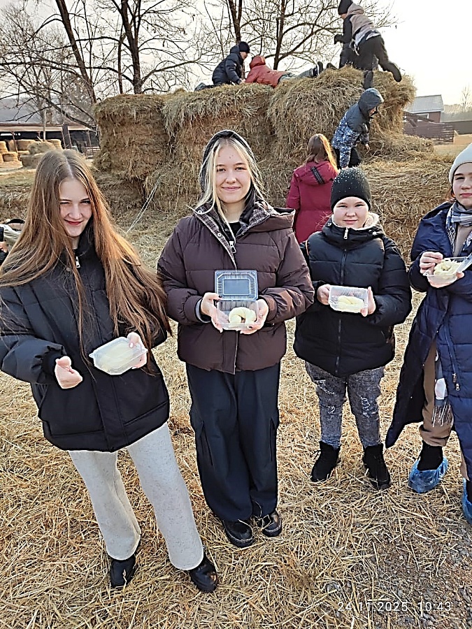 Гостеприимные хозяева сыроварни угостили всех ребят горячим чаем, вкусными домашними блинами и апельсиновым вареньем.