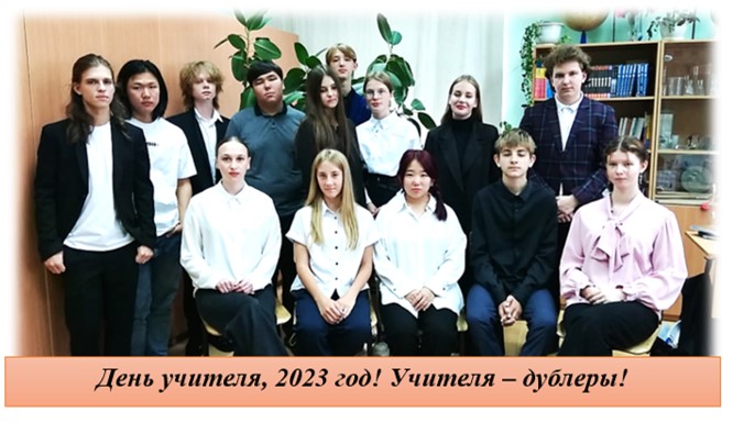 Сегодня в роли дублеров работали: Солдатенко Д, Те В., Бушуев Т., Свириденко А., Семиженов А., ученики 11 класса. Медведева М., Чикалева В., 10 класс, Логачева А., Мигашко Н., 8 класс.