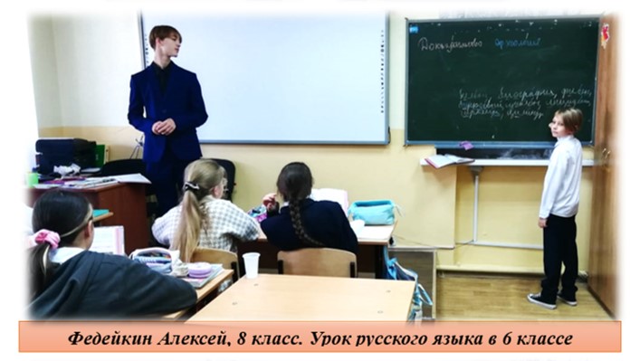 Федейкин А., 8 класс провел урок литературы на тему: «Безударные гласные в корне слова» в 6 классе.