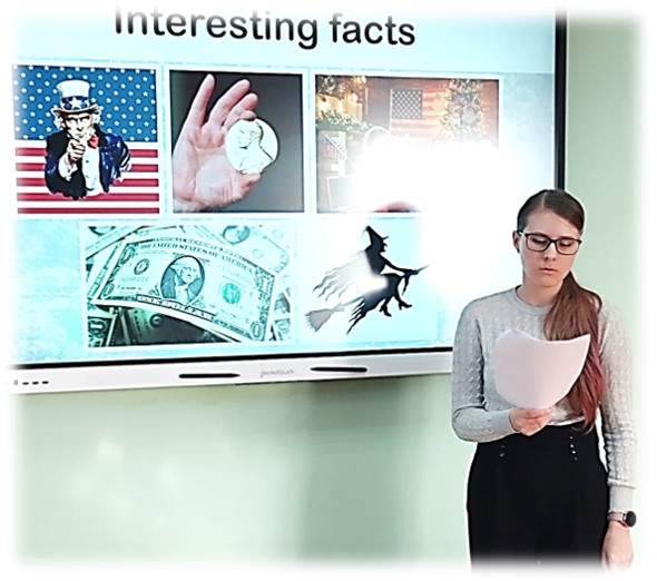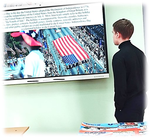 Среди обучающихся 10 класса была организована мини – конференция «Что мы знаем об англоговорящих странах?» Ребята подобрали и оформили в виде презентаций интересную информацию про англоговорящие страны и английский язык: английский язык является официальным в 67 странах мира;
