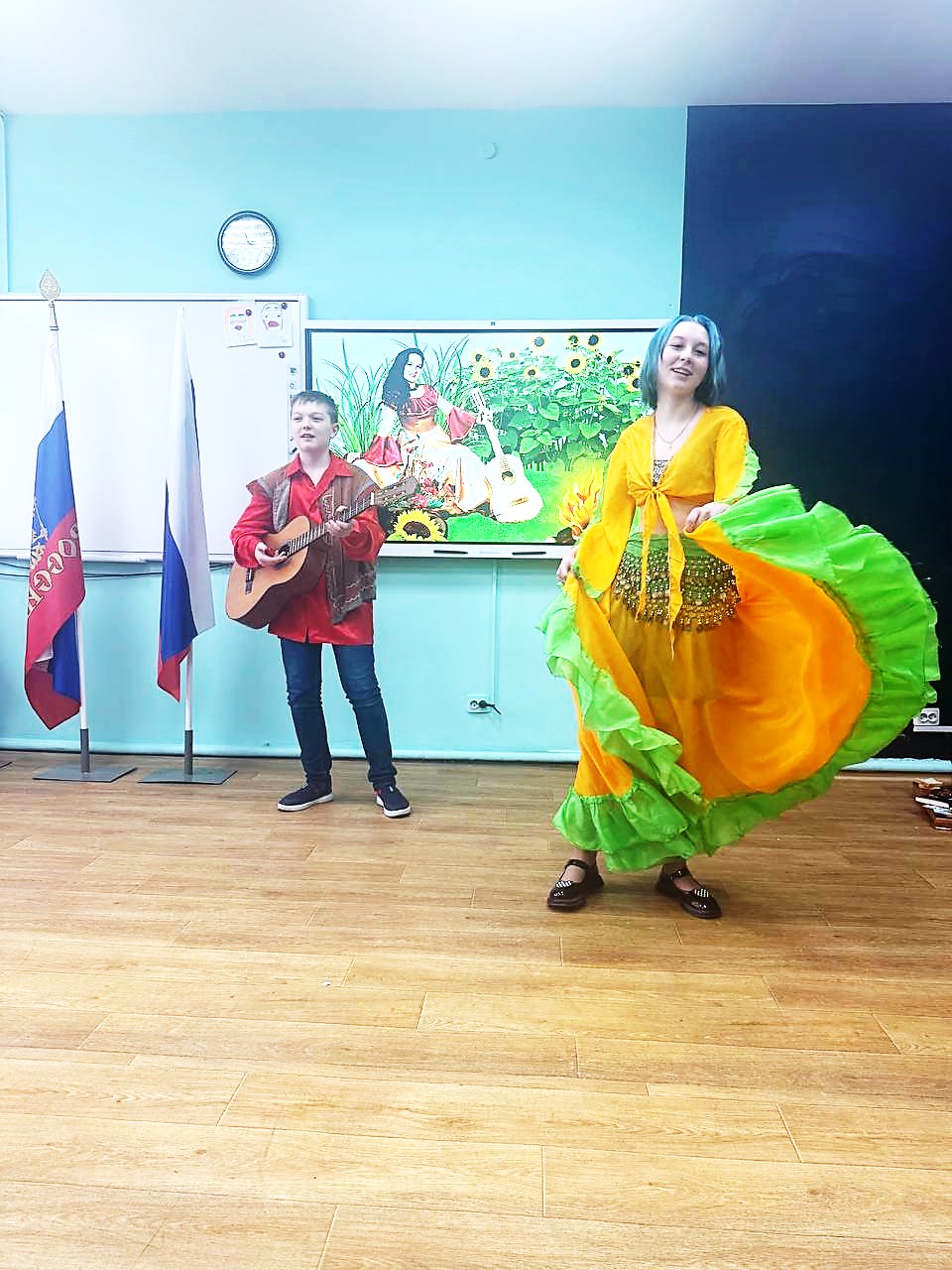 Учащиеся 8 класса познакомили нас еще с одной свободной, вольной и своенравной народностью – Цыгане, у которых есть одна пословица, которая гласит: «Как бы ты не назывался, человеком должен оставаться». В ходе представления участники фестиваля и зрители смогли прослушать цыганские напевы, посмотреть цыганские танцы, познакомиться с национальными костюмами.