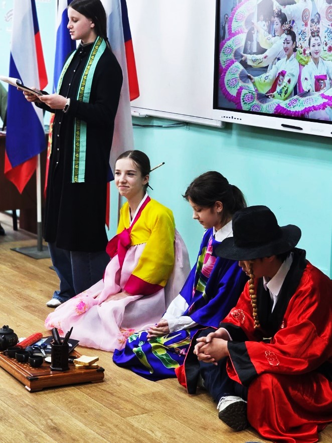 А вот и наши уважаемые соседи корейцы, которых нам представили учащиеся 6 класса.