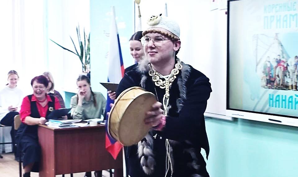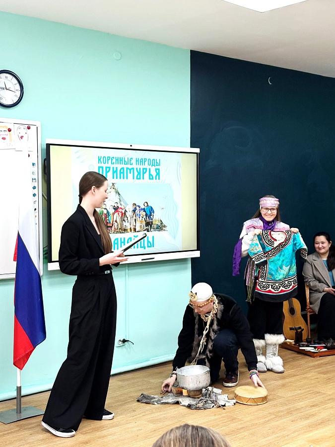 И завершили фестиваля был представлен коренной малочисленный народ Дальнего Востока – Нанайцы. Их представили ученики 11класса. Так мы узнали, что в мире проживает около 16 000 нанайцев. Проживают они на территории Китая и России вдоль берегов реки Амур и ее притоков Сунгари и Уссури, в Сахалинской области, в Приморском и Хабаровском крае.