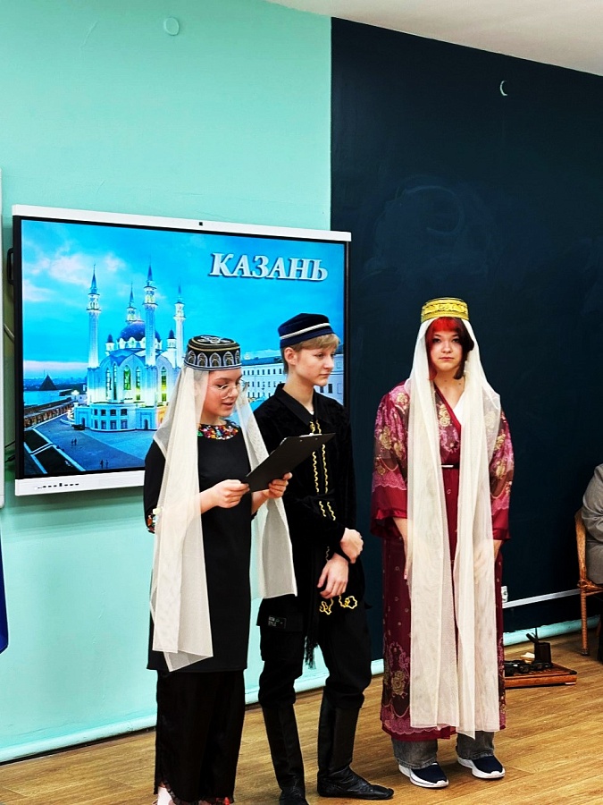 Учащиеся 7 класса помогли приобщиться к уникальной татарской культуре, которая создавалась на протяжении многих веков. «Татарские племена добровольно вошли в состав Российского государства», - сказали они и познакомили с созданием национального головного убора – тюбетейка.