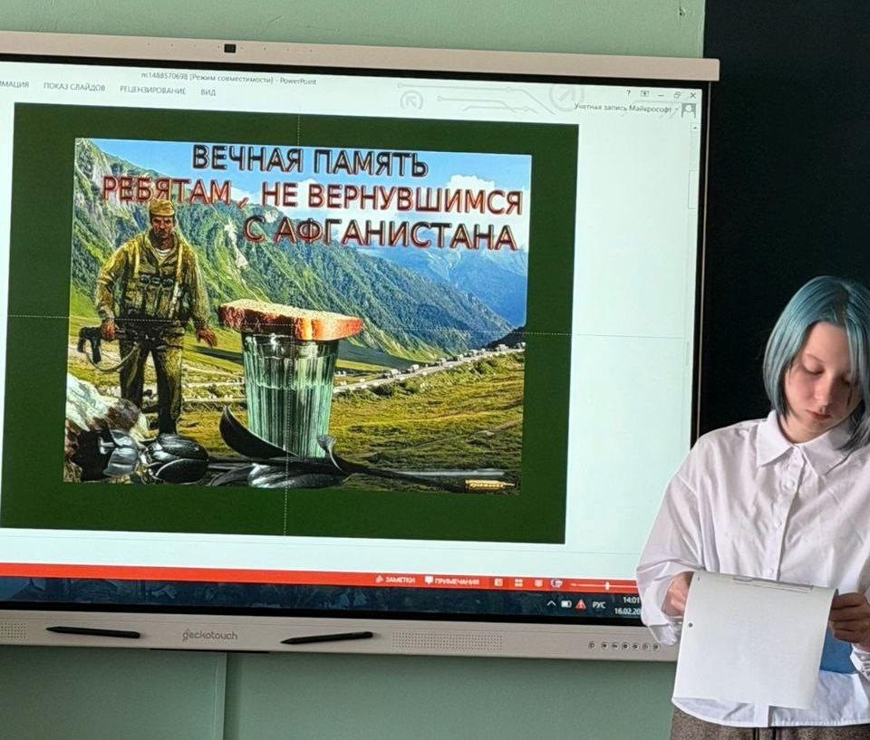 В преддверии Дня памяти воинов-интернационалистов и в рамках военно - патриотического месячника в гимназии прошли уроки мужества, посвященные 37 -ой годовщине вывода войск из Афганистана «Герои разных национальностей – гордость России» или «Афганистан – живая память».