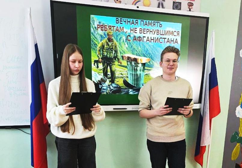 В ходе урока ребята читали стихи, познакомились с хроникой военных событий охвативших 1979-1989 годы, познакомились с примерами мужества и героизма российских воинов, где бок о бок, плечом к плечу освобождали афганский народ от террористов воины разной национальности нашей страны.