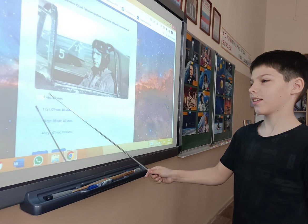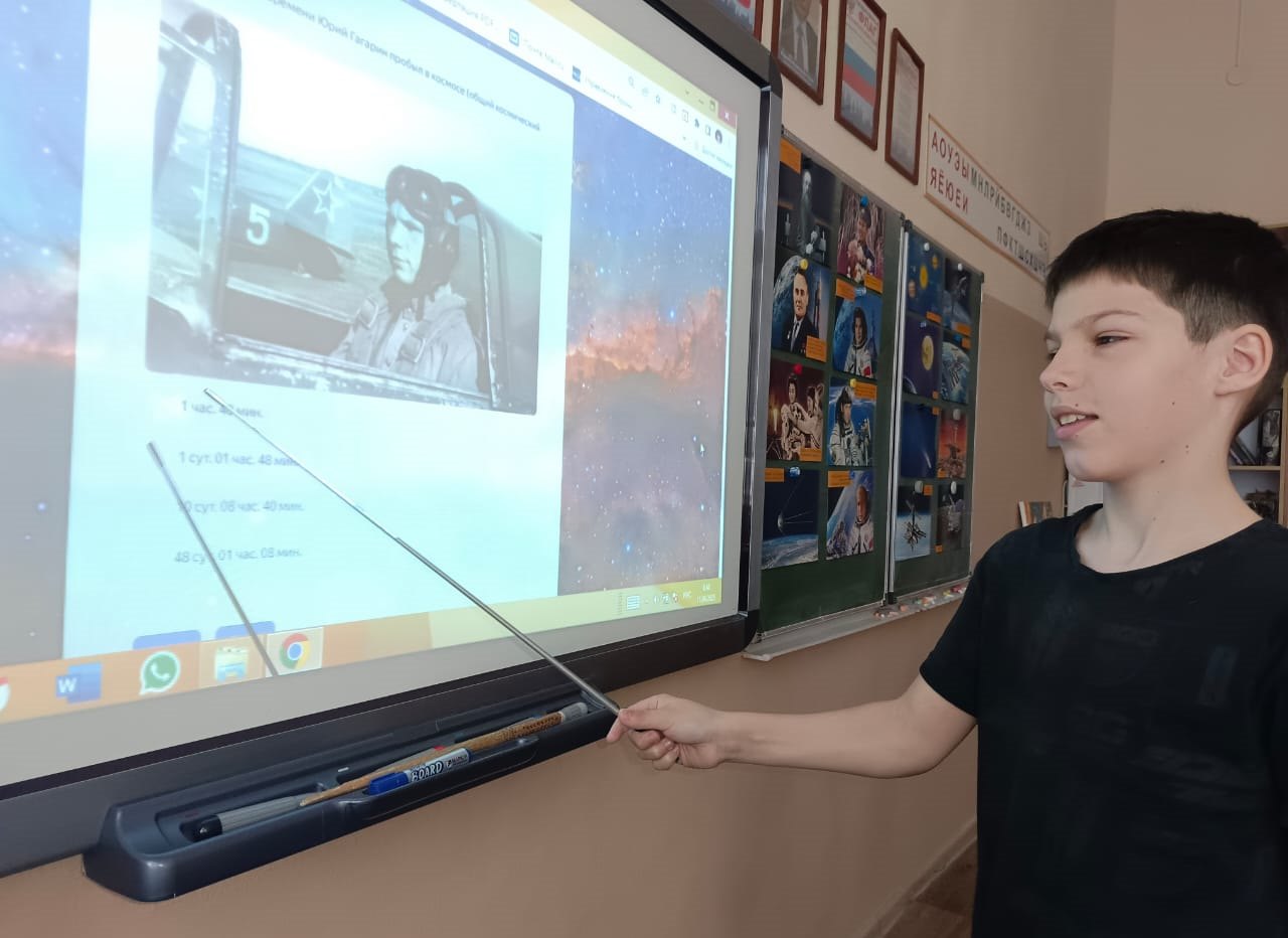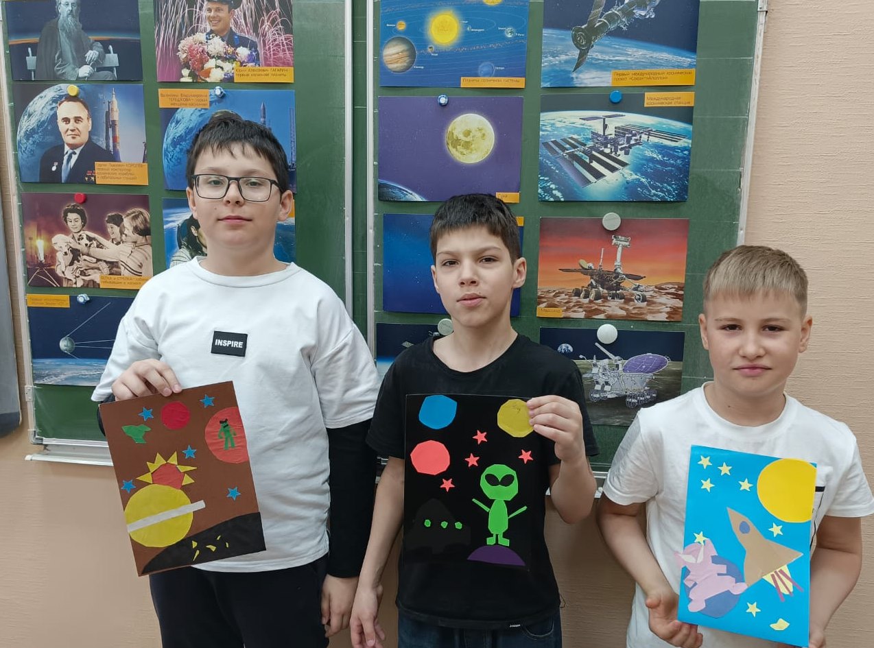 Учащиеся узнали об истории освоения космоса от древних времён до наших дней, о жизни Юрия Алексеевича Гагарина. Вспомнили имена космонавтов и российских ученых, которые внесли неоценимый вклад в российскую космонавтику. Узнали о полетах верных друзей человека – собаках Лайке, Стрелке и Белке.