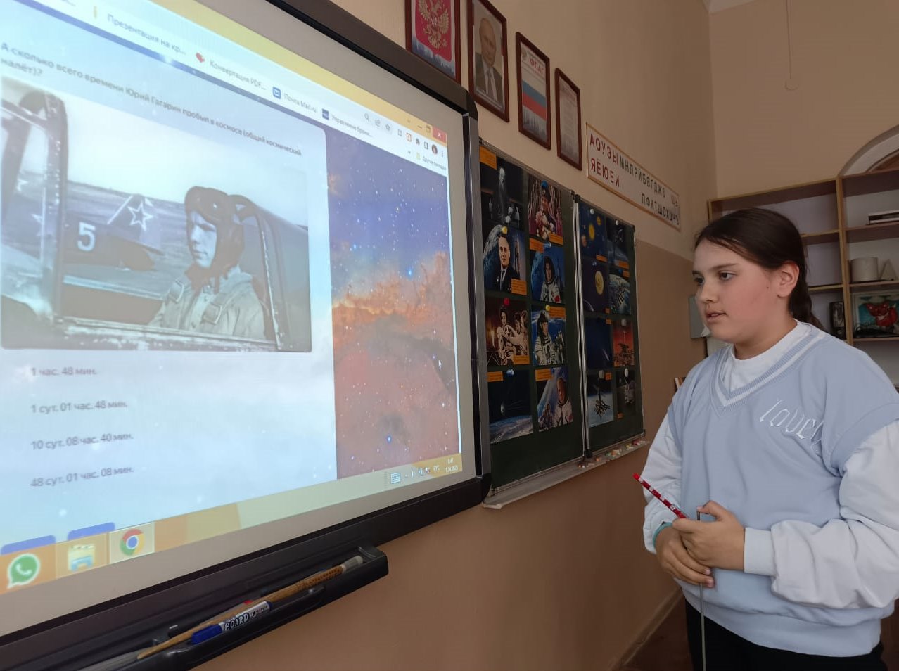 Накануне Дня космонавтики в 4 «А» классе прошёл классный час «Шаг во Вселенную».