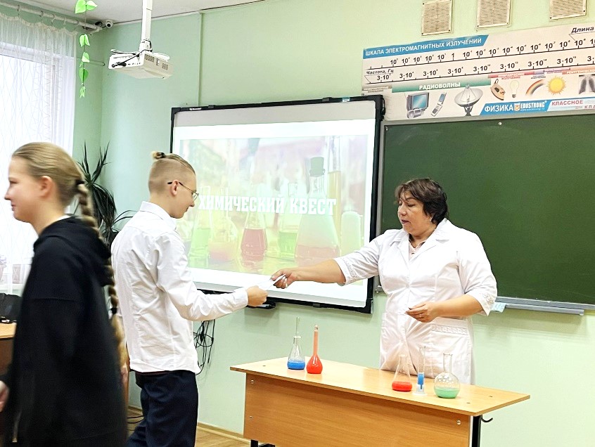 С целью развития познавательного интереса к предмету химия и расширения кругозора учащихся в 9 классе прошла интеллектуальная квест – игра «Химический калейдоскоп». Игра прошла в рамках недели химии и биологии.
