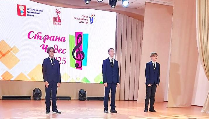 На муниципальном фестивале «Страна чудес» ЧОУ «Перфект – гимназию представляли Лауреаты муниципального конкурса «С любовью к слову – 2025» учащиеся Карасев Кирилл, Макаров Александр, 7 класс и Антоненко Александр, 6 класс. На сцене МБОУ «Центра творчества» города Уссурийска они прочитали стихотворение Льва Протасова «Нет страны прекраснее на свете».