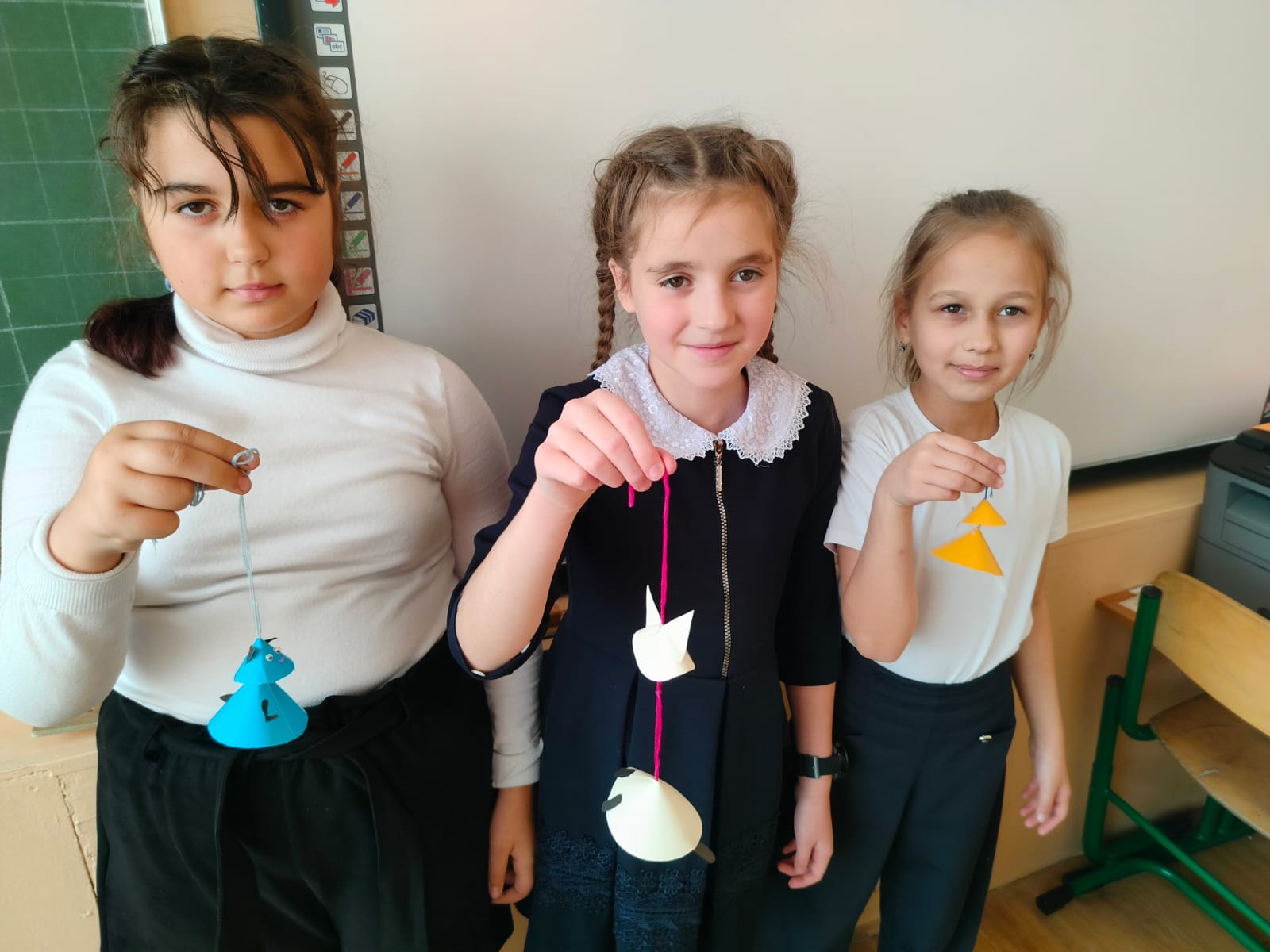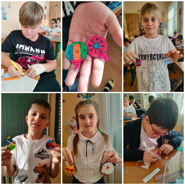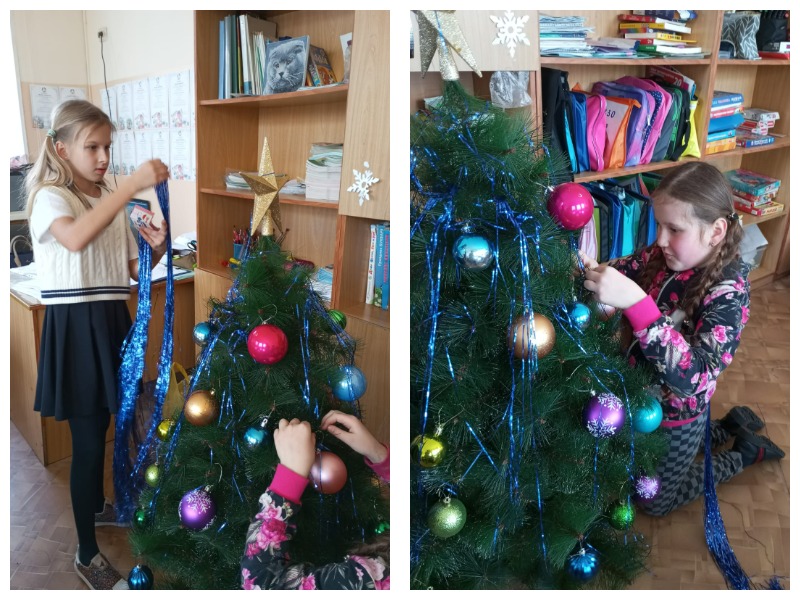 мастерит красивые новогодние поделки, которыми потом украшают класс.