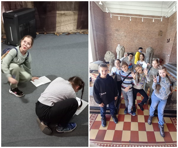 И в завершении четвероклассники прошли по постоянным экспозициям. Но не всё так просто. Учителем был предложен квест: найти некоторые предметы среди множества экспонатов музея. Пак Герман был самым внимательным. Он первым прошёл все задания. Были найдены и барабаны из Поднебесной, и бронзовое зеркало, и деревянная фигурка божества тайги, и кирпич Старцева, и погребальный комплекс средневекового князя. С другими заданиями квеста справились Вика Кулешова и Абрамова Яна. Они искали экспонаты по коллекциям музея: холодного оружия, фарфора, дерева, подлинных документов, фотофонда и т.д.