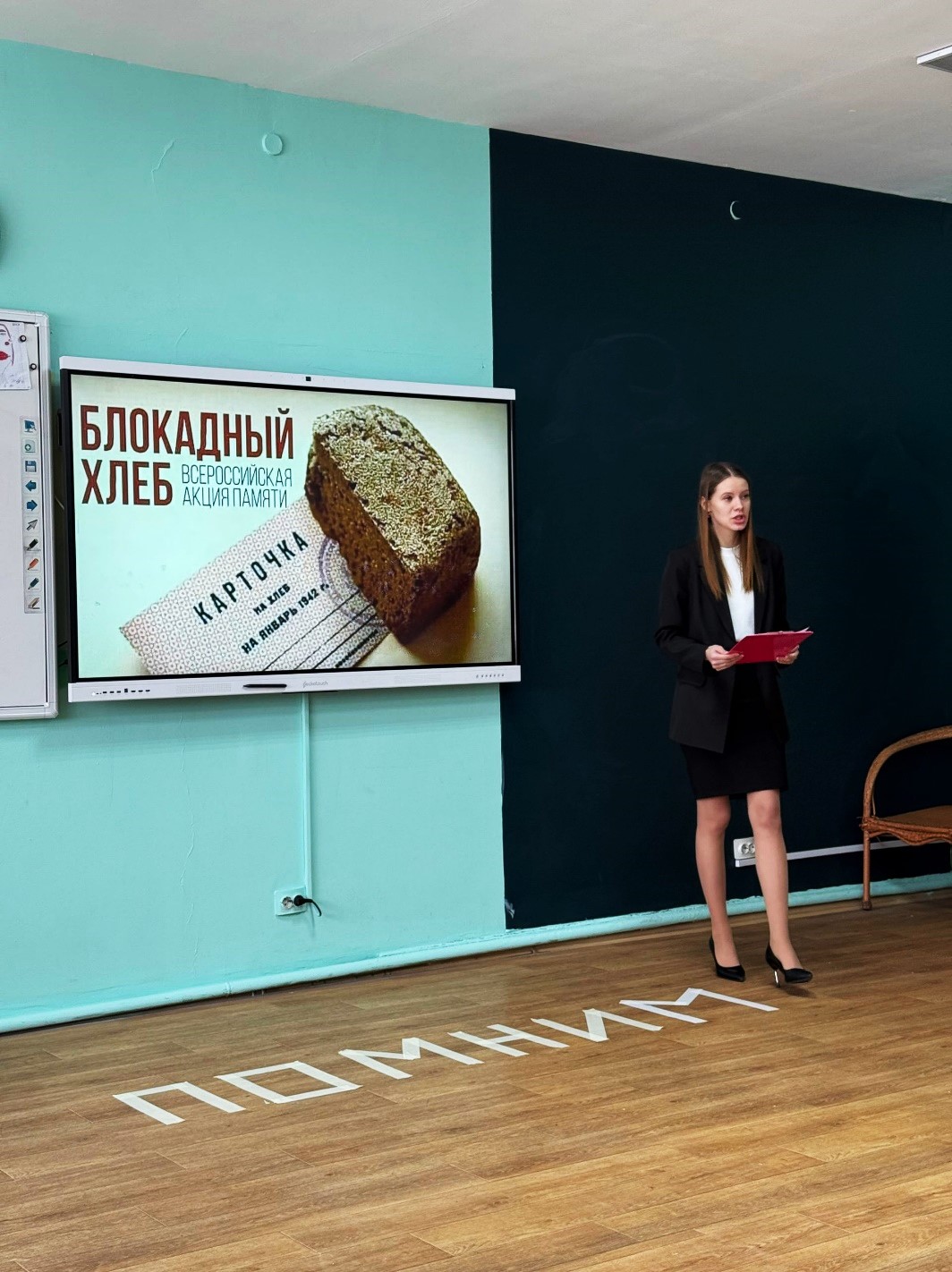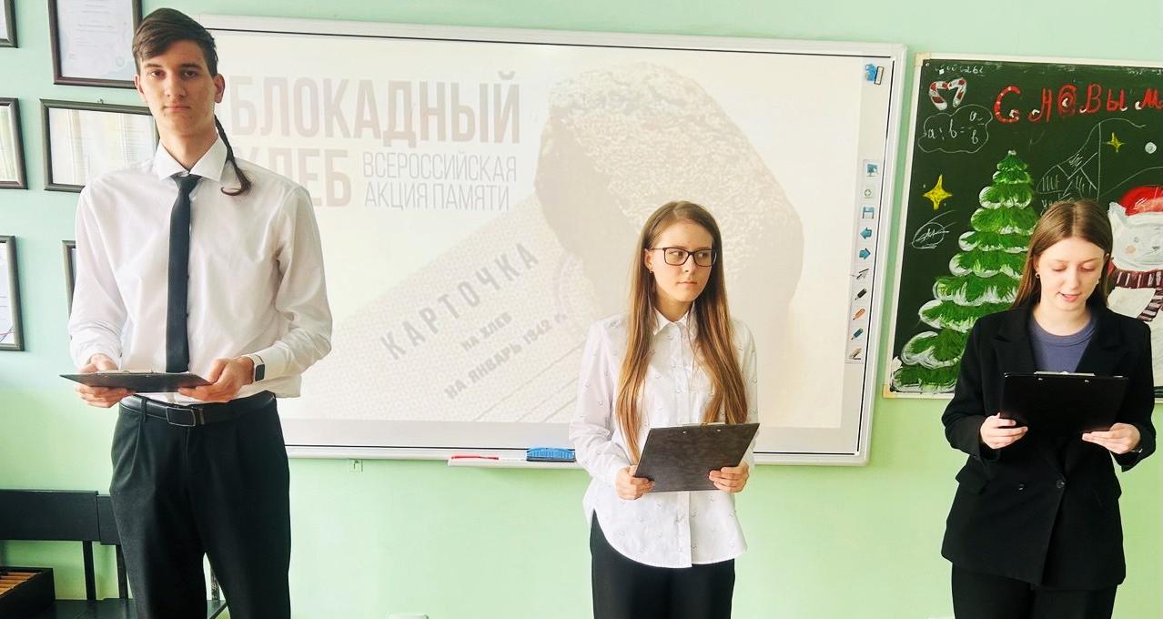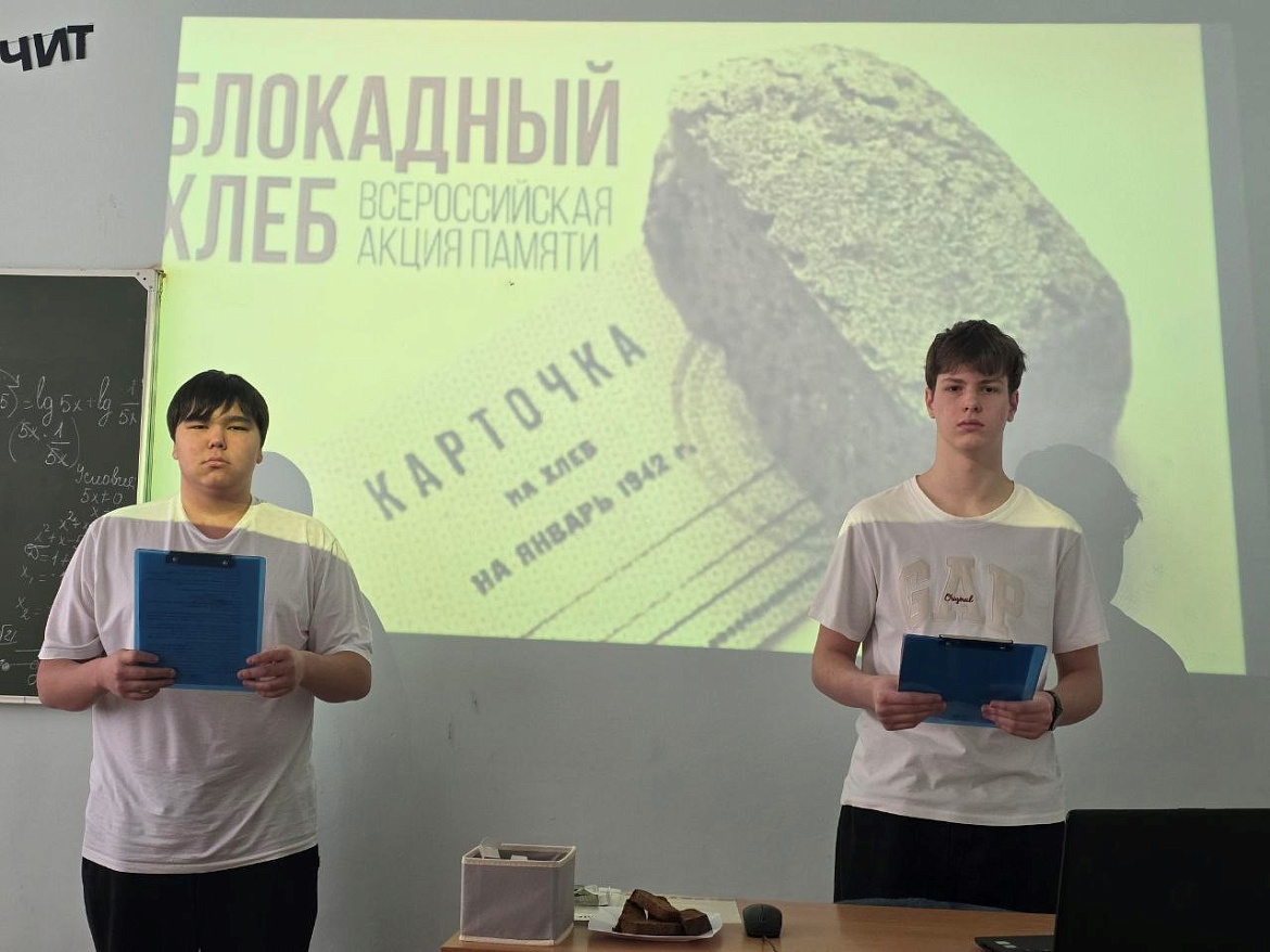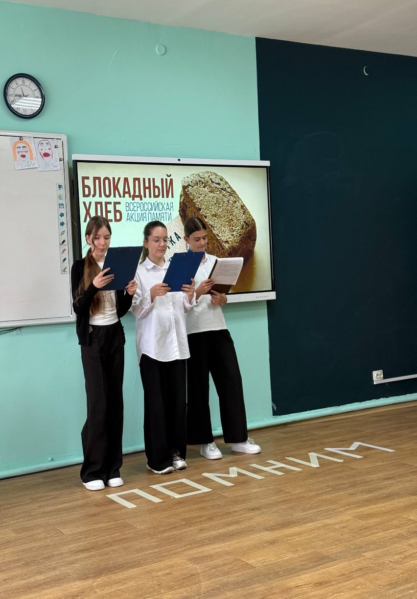 Акция «Блокадный хлеб» сопровождалась чтением стихов, ребята смогли прослушать песню в исполнении Ильи и Михаила Литвиновых о блокаде Ленинграда, а также посмотреть документальный фильм «Непокорённый Ленинград».