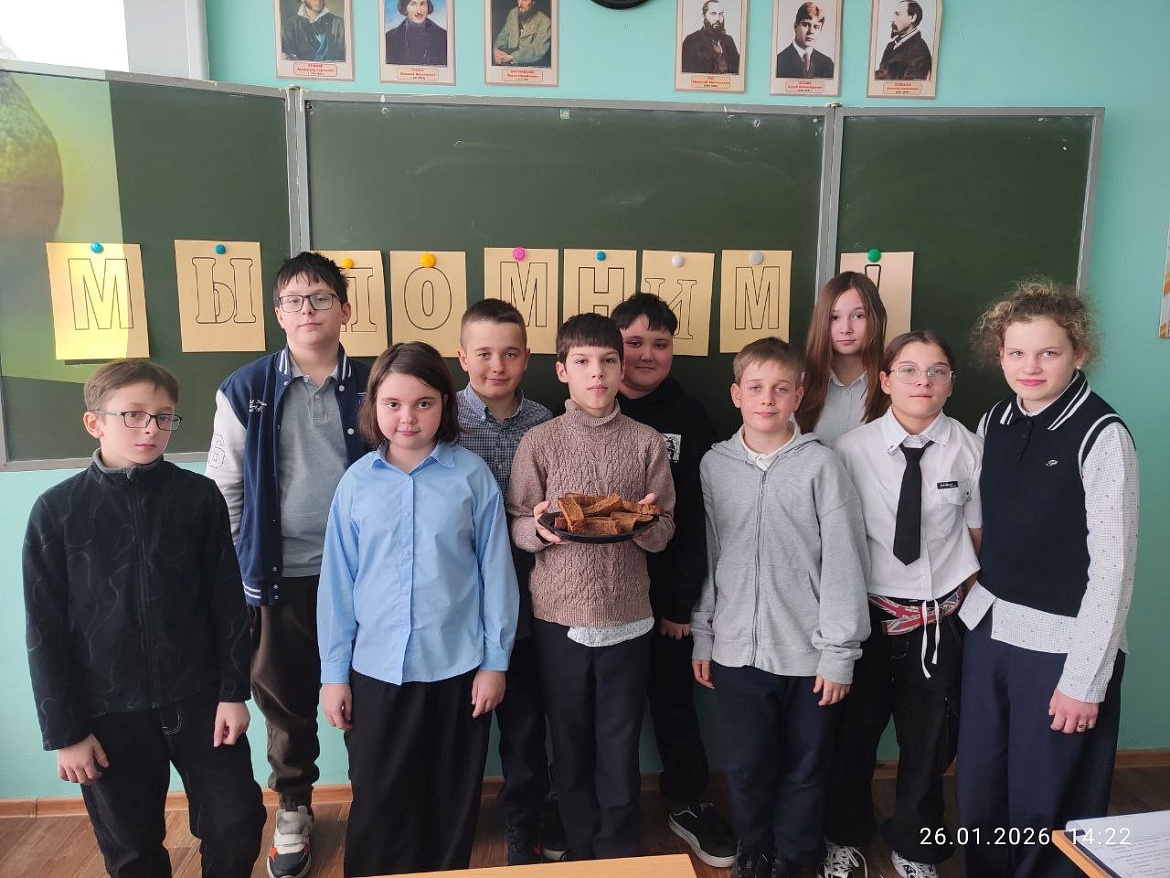 Каждый из учеников получил в этот день кусочек черного хлеба весом в 125 грамм и попробовать его. Держа в руках этот маленький кусочек хлеба, ребята удивлялись «Как этот «Блокадный хлеб» весом всего 125 грамм смог помочь ленинградцам пережить суровые годы блокады, не потерять стойкость, волю и силу духа».