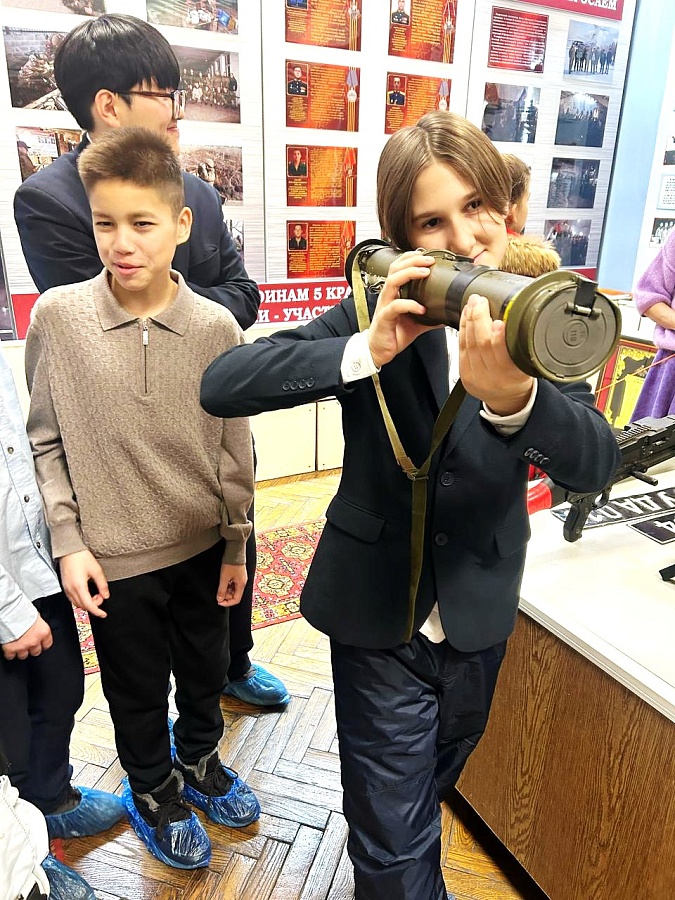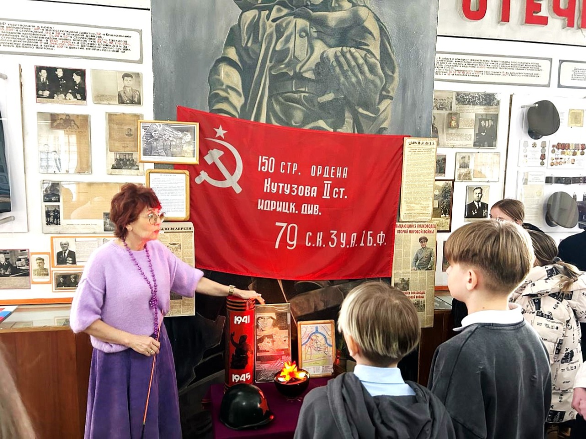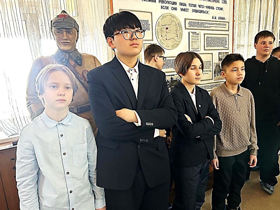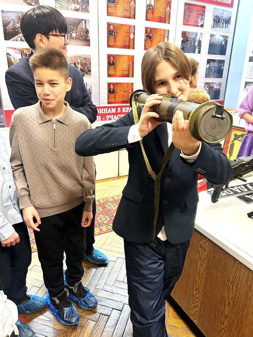 С целью формирования высокого патриотического сознания, чувства верности своему Отечеству учащиеся 6-8 классов посетили музей Боевой Славы Дома офицеров Российской Армии города Уссурийска, где их радушно встретила хозяйка музея Ирина Николаевна, она же экскурсовод. Экскурсия проходила в преддверии двух значимых праздников: 80 – летия со дня Победы и День защитника Отечества.