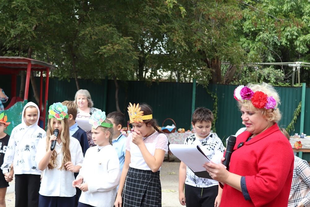 После уроков распахнула двери долгожданная ярмарка: начались представление и конкурсы. На столах разложили овощи, фрукты, выпечку. Чего только здесь не было: вся огородная зелень, помидоры, огурцы, баклажаны, перец сладкий и горький, картофель, тыква, кукуруза. А к оздоровительному чаю с шиповником, боярышником и травами хорошо пришлись мёд, блины, оладьи, пироги.