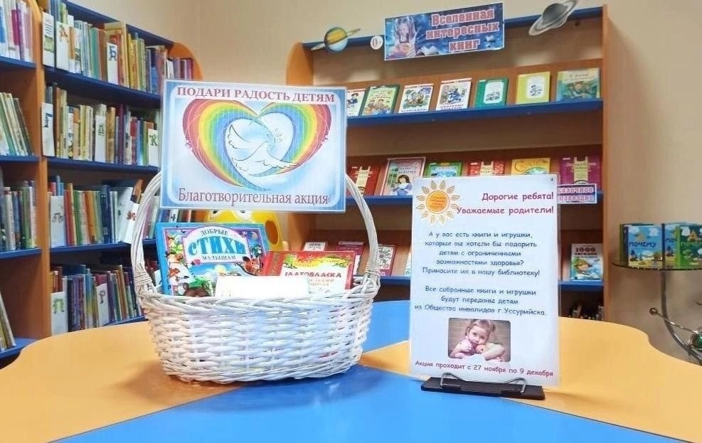 6 декабря 2023 года в Центральной детской библиотеке г. Уссурийска по адресу ул. Некрасова, 37, проходила акция "Подари радость детям!".