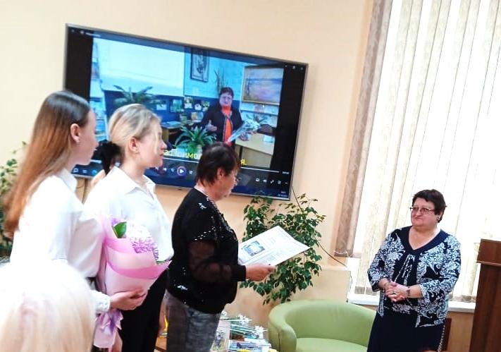 Ребята пожелали Надежде Алексеевне дальнейшего покорения новых творческих высот, прочной дружбы с Музой и вручили ей памятный адрес, цветы.
