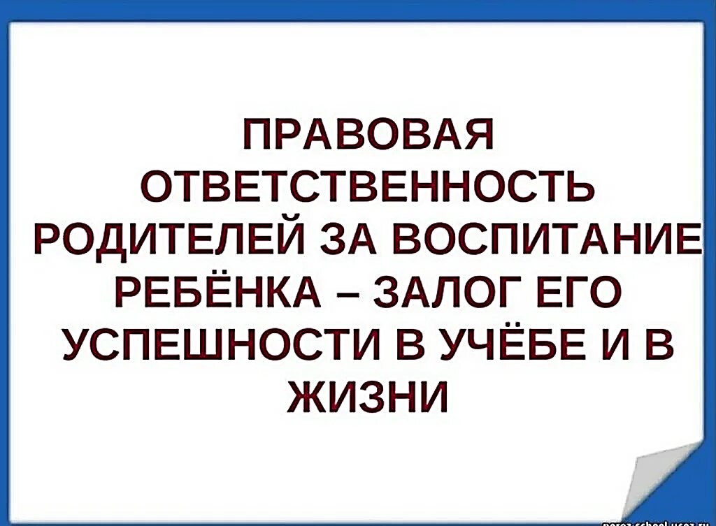 К гражданско-правовой ответственности можно привлечь родителей, если в результате того, что они не выполнили свои обязанности по Закону об образовании, был причинен ущерб. Например, родители умаляют честь и достоинство других обучающихся, работников, ущемляют их права, порочат деловую репутацию образовательной организации. В таком случае школа вправе подать иск в суд с требованием прекратить подобное поведение и возместить причиненный ущерб (ст. 152 ГК)