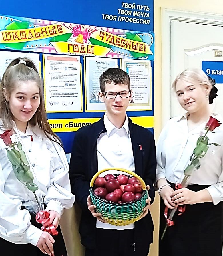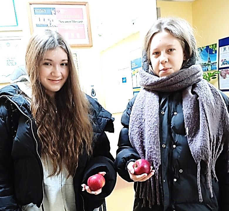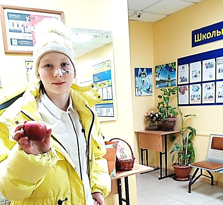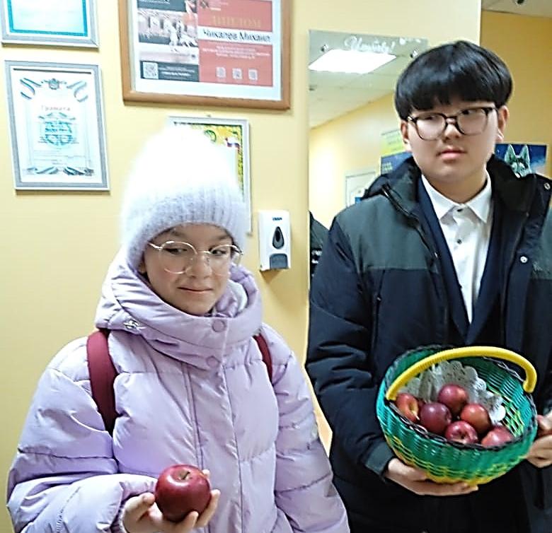 С самого утра, как только ребята переступили порог школы, они тут же получили угощение: их ждали красивые, ароматные, красные яблоки. И с каким бы настроением каждый ученик не пришел в школу, получив яблочко , в ответ улыбался и благодарил.
