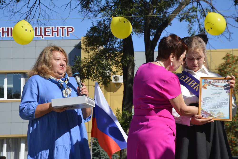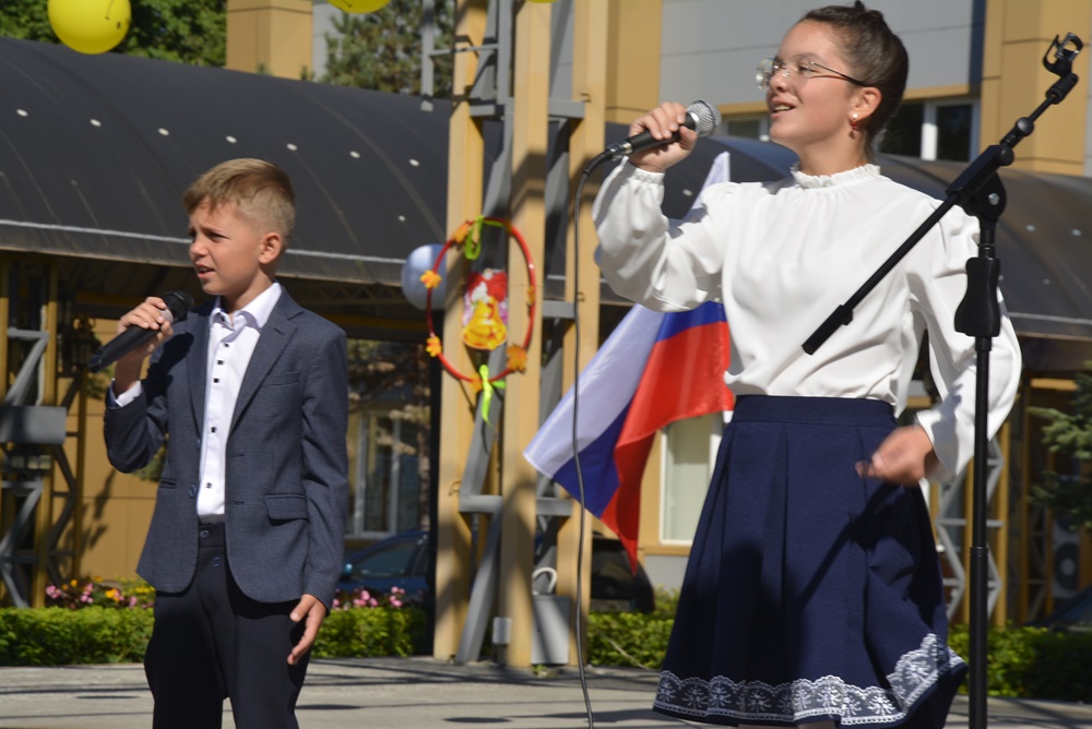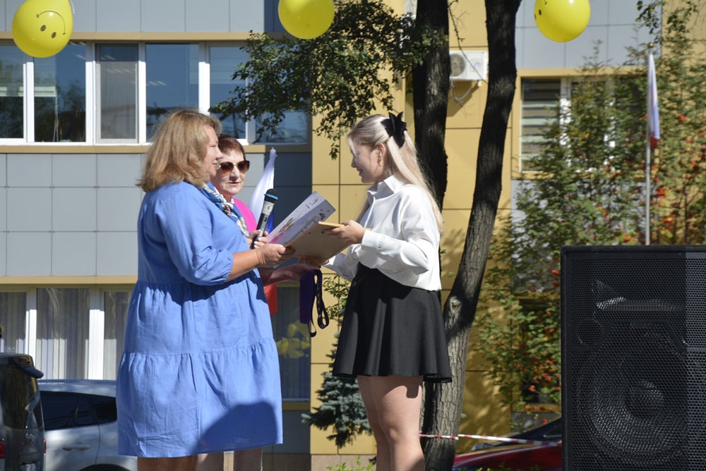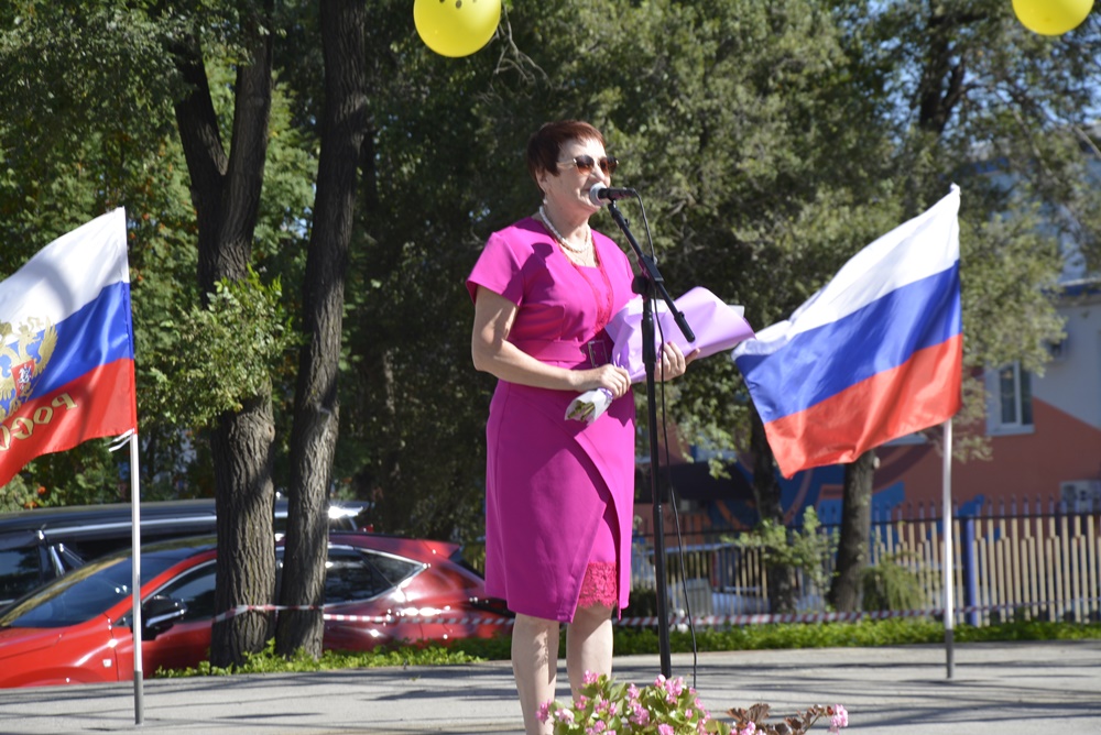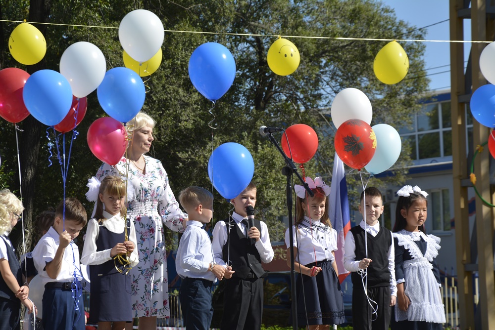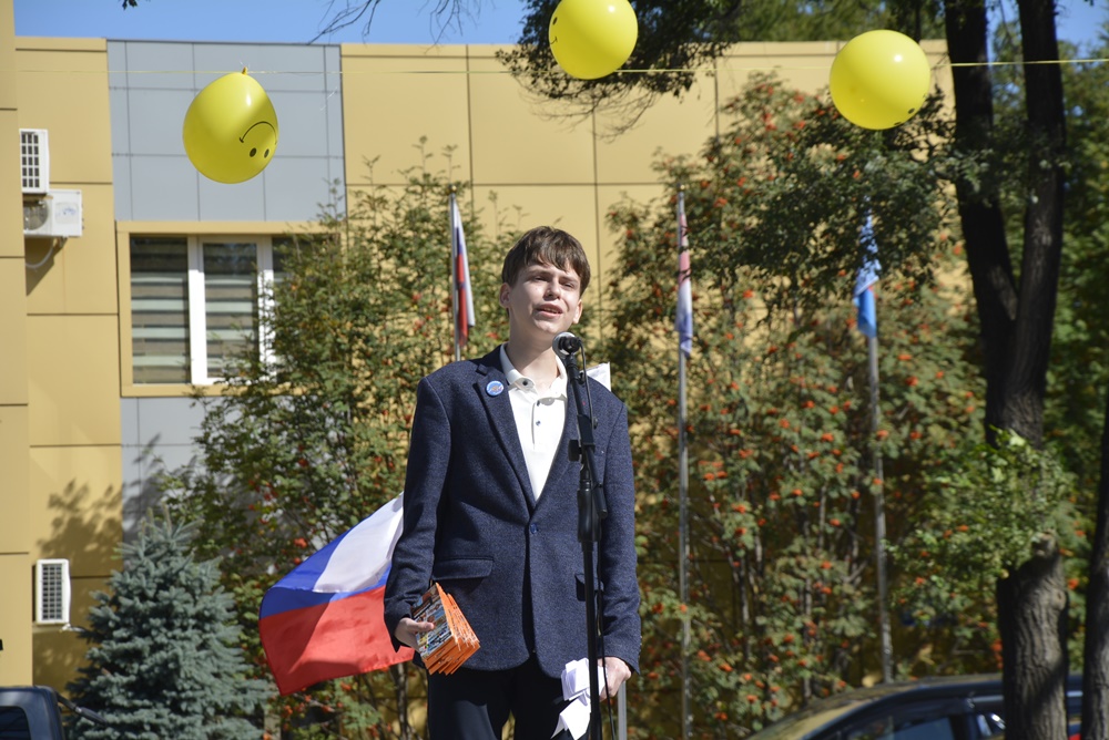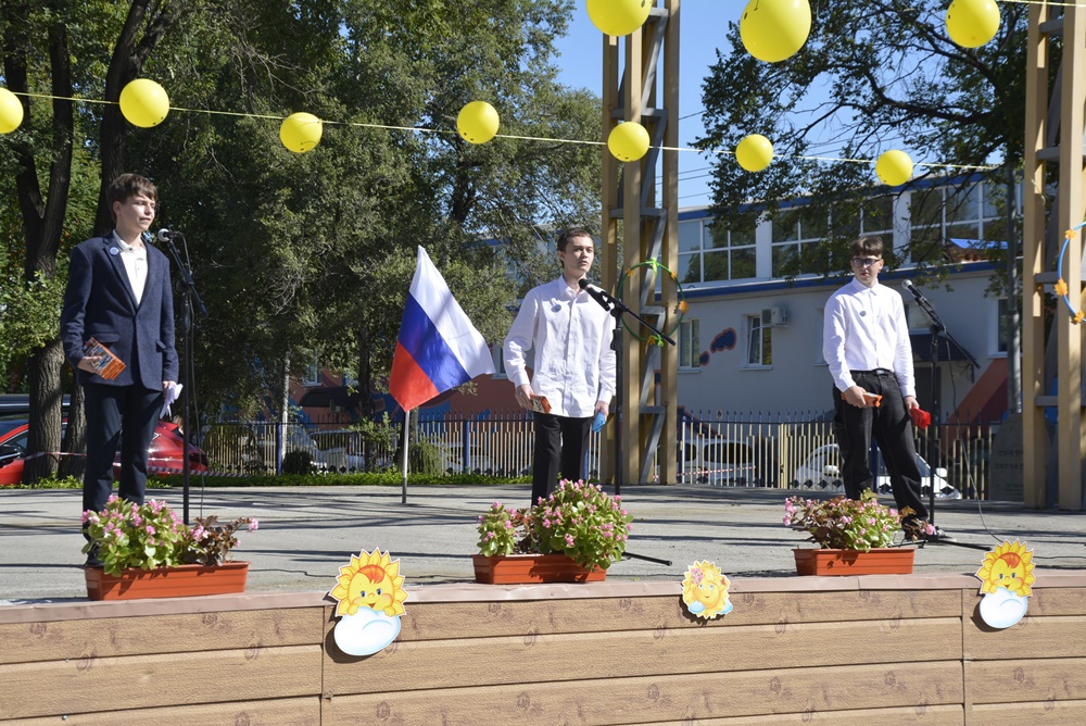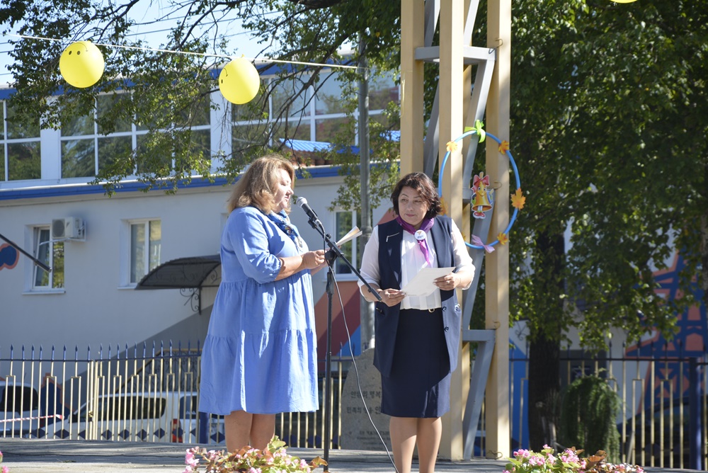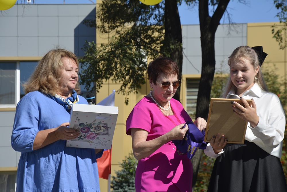 Здесь, на торжественной линейке, посвященной Дню Знаний, первоклассников и всех ребят нашей гимназии поздравила директор гимназии Ижко О. Д., пожелав в новом учебном году всем хорошо учиться и достигать как можно больше побед на всех этапах школьного пути.