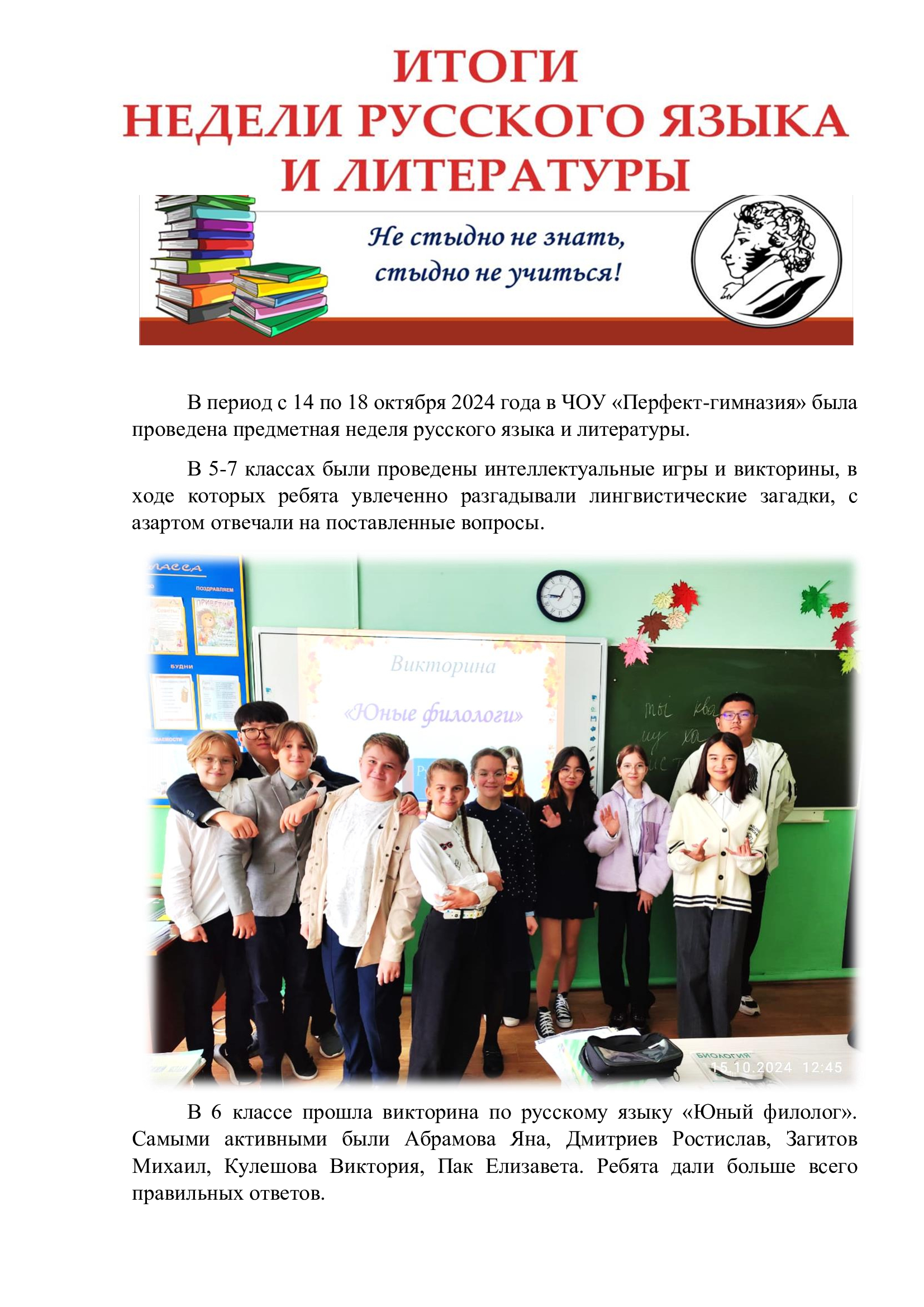 Итоги предметной недели