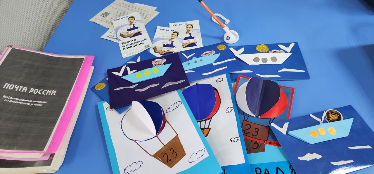 Обучающиеся с большим удовольствием сделали открытки, написали тёплые слова и поздравления дедушкам. Все открытки были отправлены почтой.