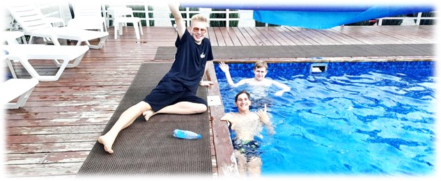 Продуманное сочетание людского творчества и природы оставило у ребят массу положительных эмоций. Ребята катались на катамаранах, наслаждались водной гладью, солнцем, восхищались кувшинками, фонтаном в пруду, купались в бассейне, гуляли по мощеным дорожкам среди осеннего леса, играли в разные игры, покоряли канатную дорогу, познакомились с яркими образцами деревянного зодчества, русской историей, традициями и бытом ушедших времен, открыли тайны Средневекового форта!