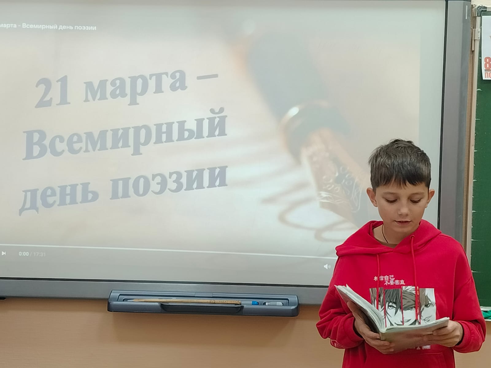 21 марта в 4 классах прошел урок внеклассного чтения «Поэзия – мелодия души», посвященный Всемирному Дню поэзии.