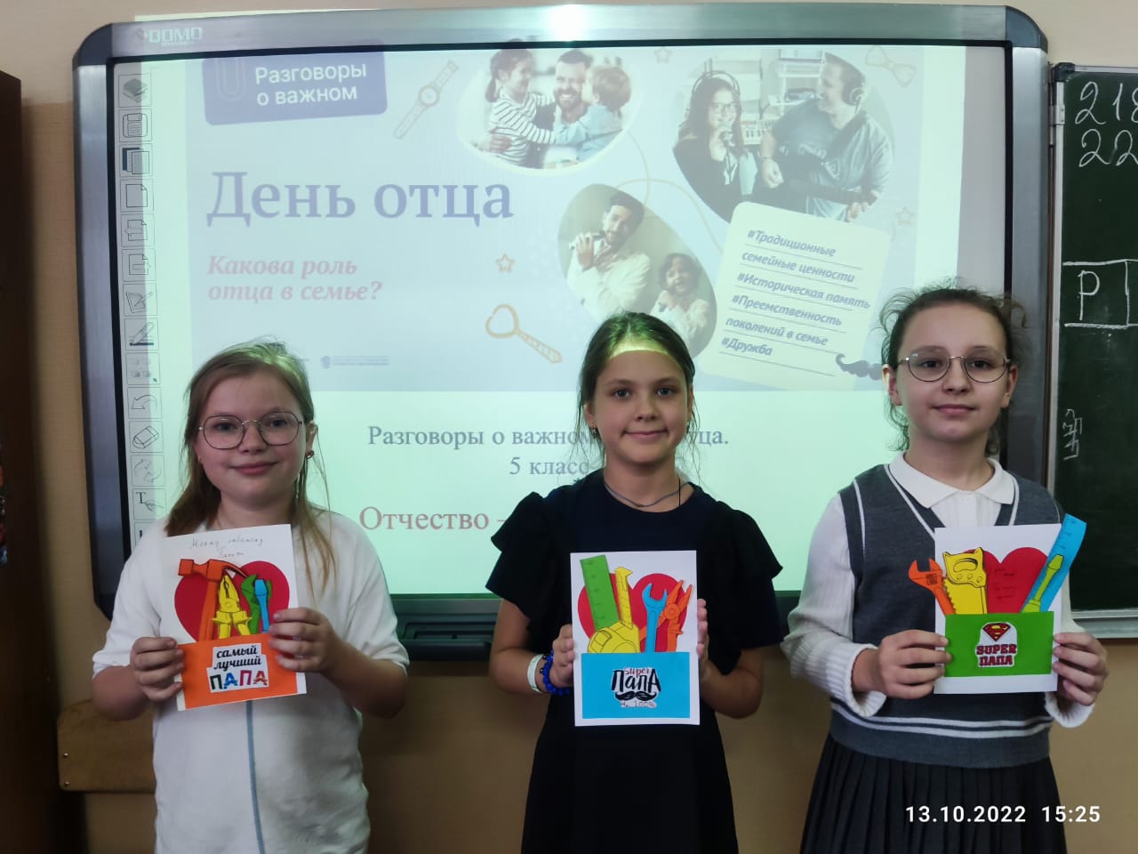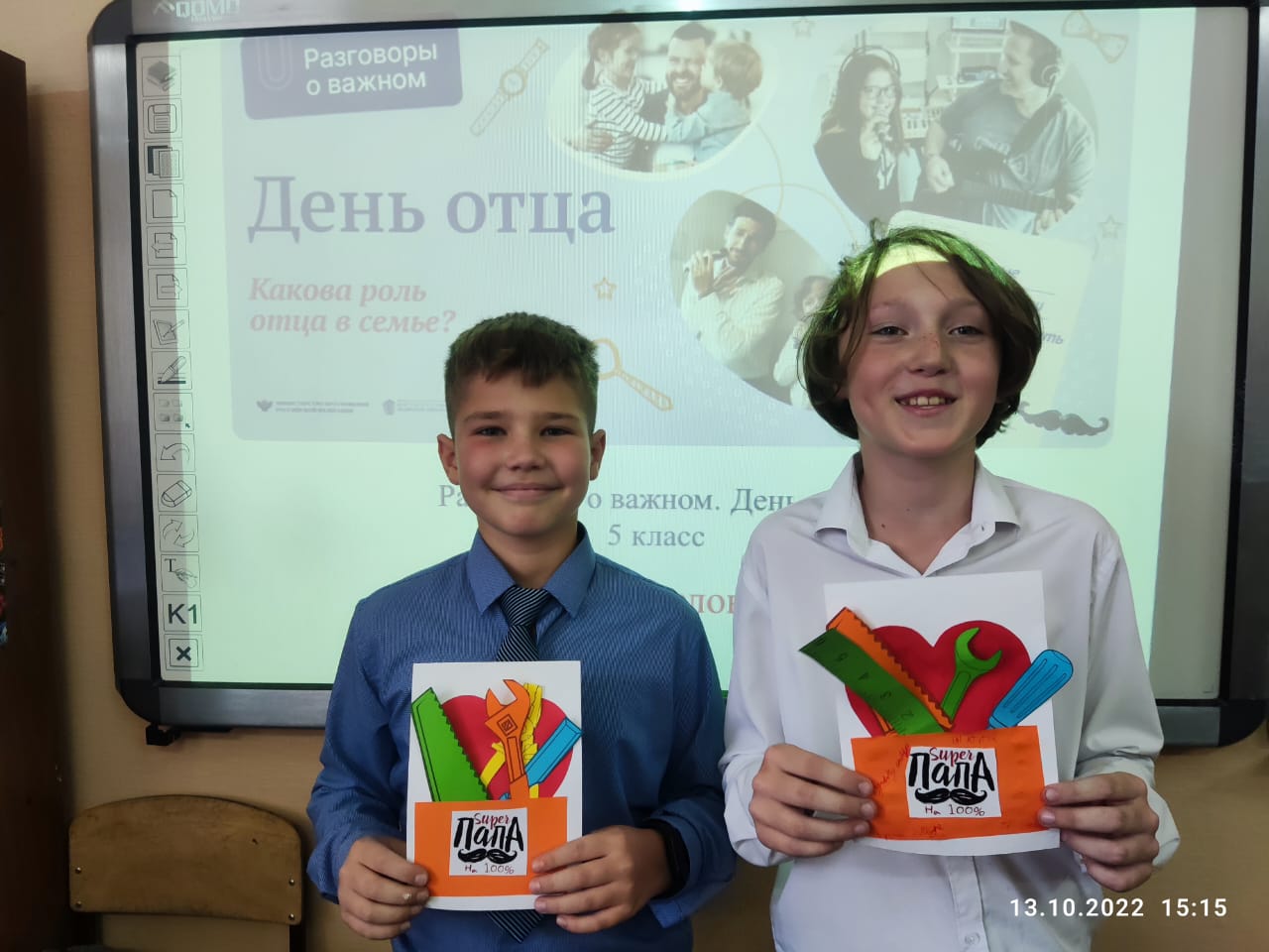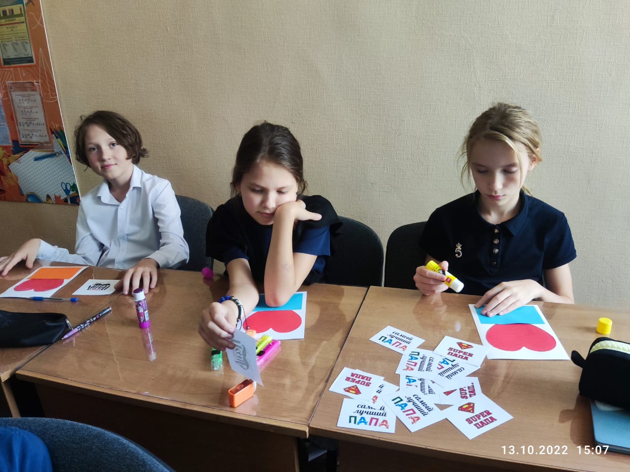13 октября учащиеся гимназии сделали своими руками поздравительную открытку для пап. Подарки, сделанные своими руками, несут в себе много положительных эмоций как тому, кто этот подарок делает, так и тому, для кого предназначен. Открытка будет приятна папе. Детские старания не пройдут даром, ведь теплота души, вложенная ребёнком при работе, почувствуется всеми.