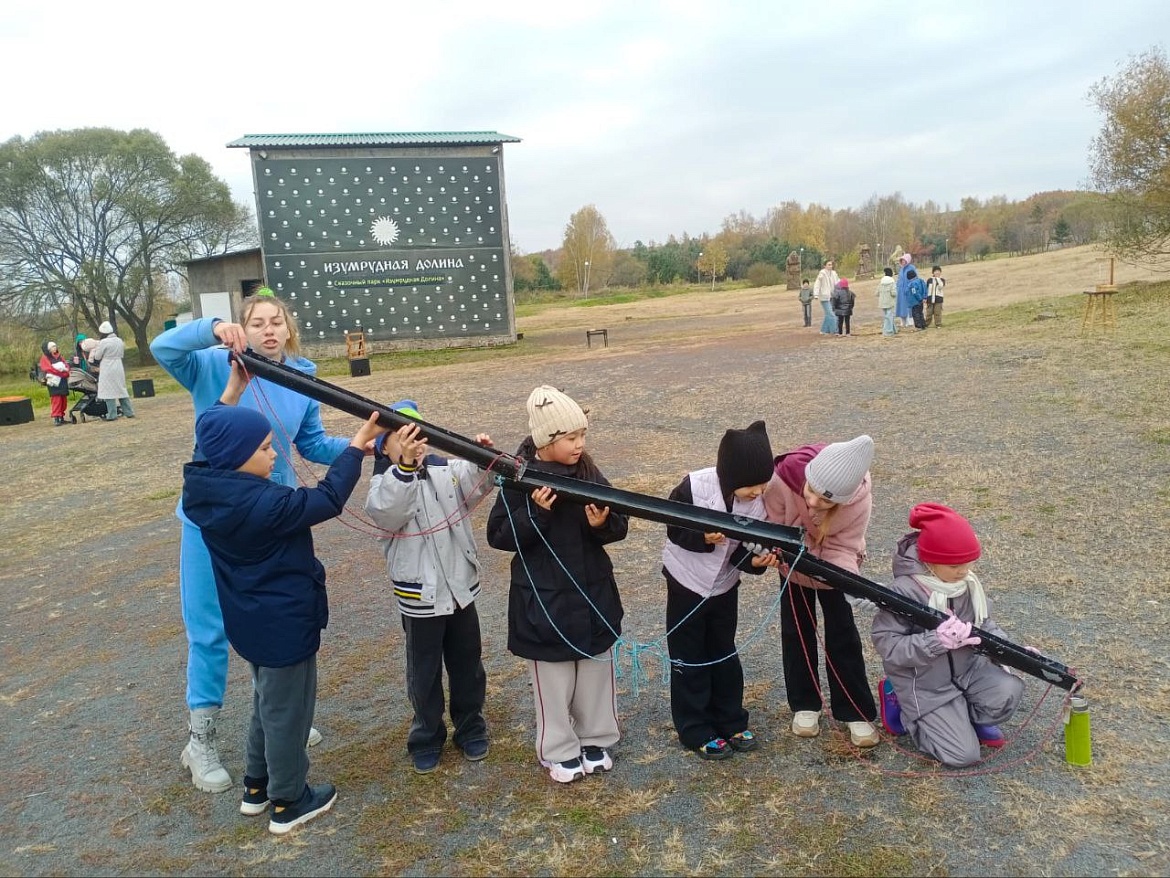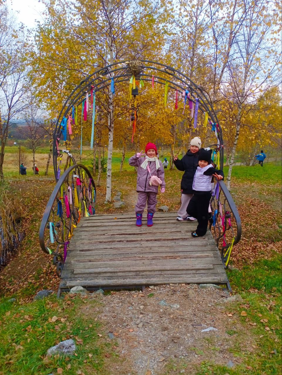 Ребята и взрослые прошли по исторической части парка и его окрестностям. Полюбовались историческими постройками, инсталляциями, а также красотами осенней природы.