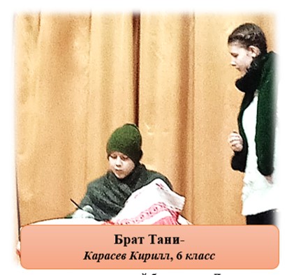 Для участия в конкурсе актеры театральной студии «Вдохновение» выбрали одну из четырех предложенных тем конкурса «Блокадный хлеб» (к 80- летию снятия блокады Ленинграда) и подготовили отрывок из произведений Л. Никольской «Должна остаться живой» и О. Шестинского «Блокадные новеллы».
