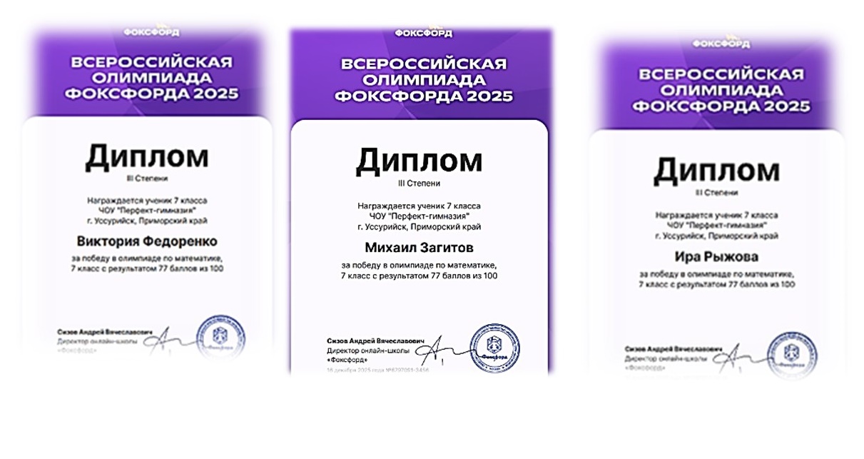 В этот раз учащиеся 7 класса приняли участие во Всероссийской олимпиаде ФОКСФОРД по математике, которая проходила в онлайн режиме для школьников 1-11 классов с 01 октября по 14 декабря 2025 года.