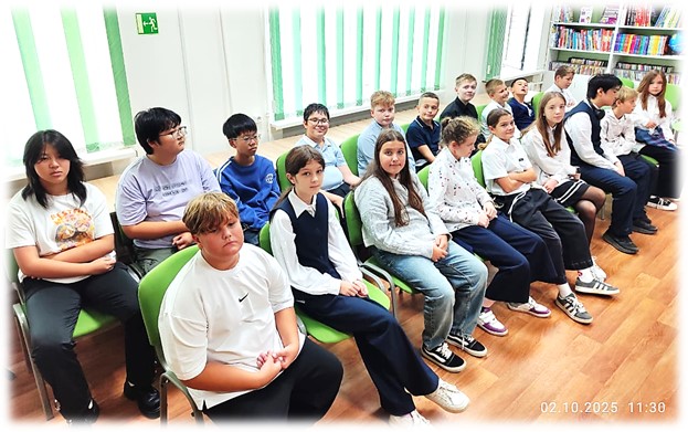 2 октября 2025 года учащиеся 5-7 классов гимназии вместе со своими классными руководителями Солодовниковой Т.В. и Малыгиной Е.А., а также библиотекарем гимназии Барановой Л.П. посетили детскую городскую библиотеку им. Н.К. Крупской и библиотеку Семейного чтения.