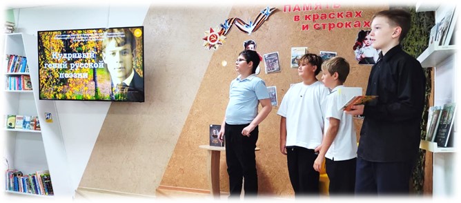В ходе встречи работники библиотек показали ребятам презентацию о жизни и творчестве уникального и самобытного поэта, в работе которого нашли отражение красота и грусть русской деревни, широта и трагизм русской души, и тоска по утраченному, величие природы и бурление революции.