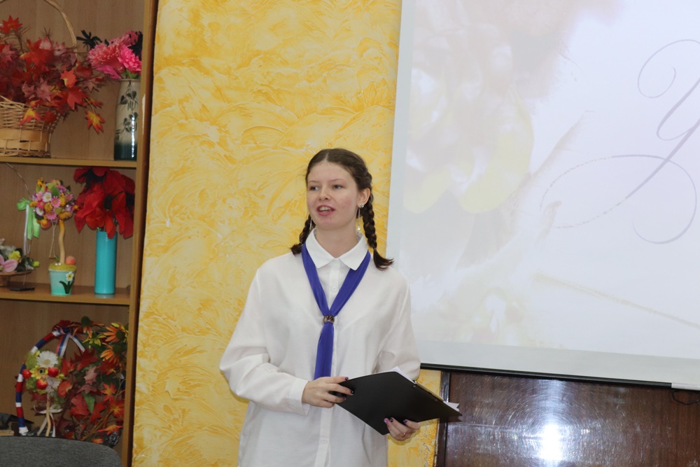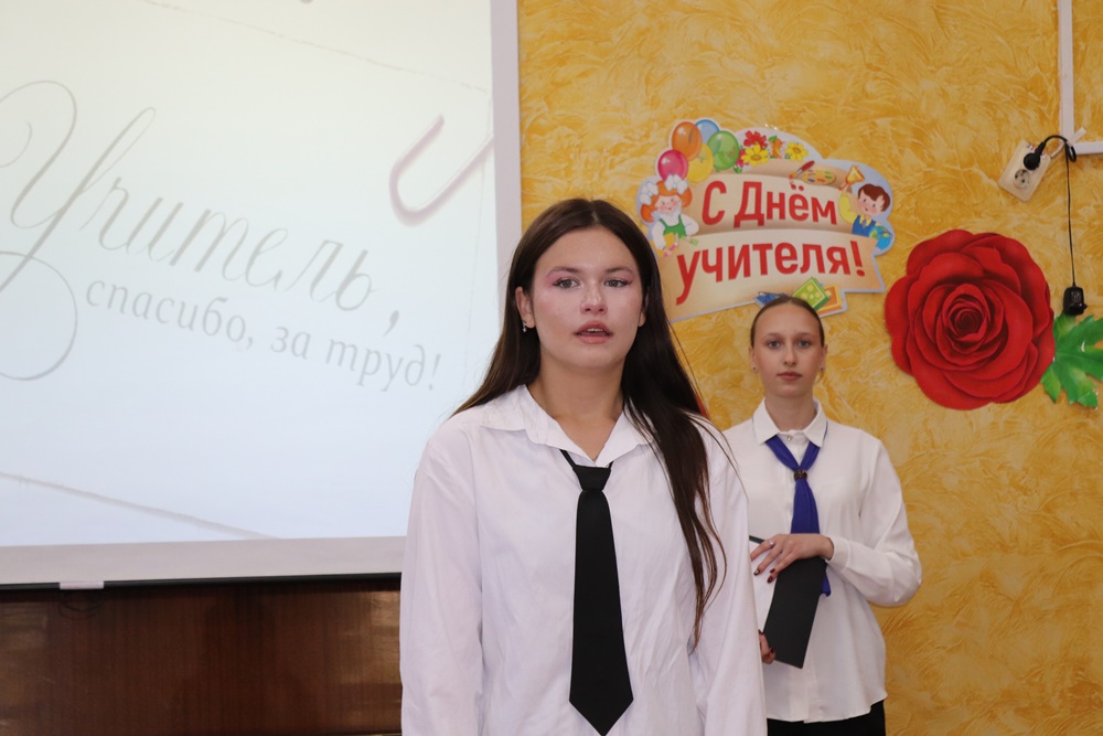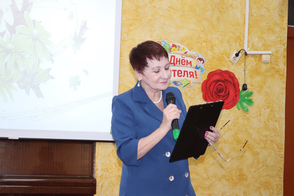 Ветеран труда и наставник молодых учителей Коковина Ирина Владимировна, которая более 45 лет отдала своей профессии никогда не сомневалась в правильности выбора своего профессионального пути, не только поздравила с Днём учителя своих коллег, но и отметила: «... учить детей, давать им знания и путёвку в жизнь - вот главное предназначение каждого из нас. Быть учителем это призвание, а не профессия!»